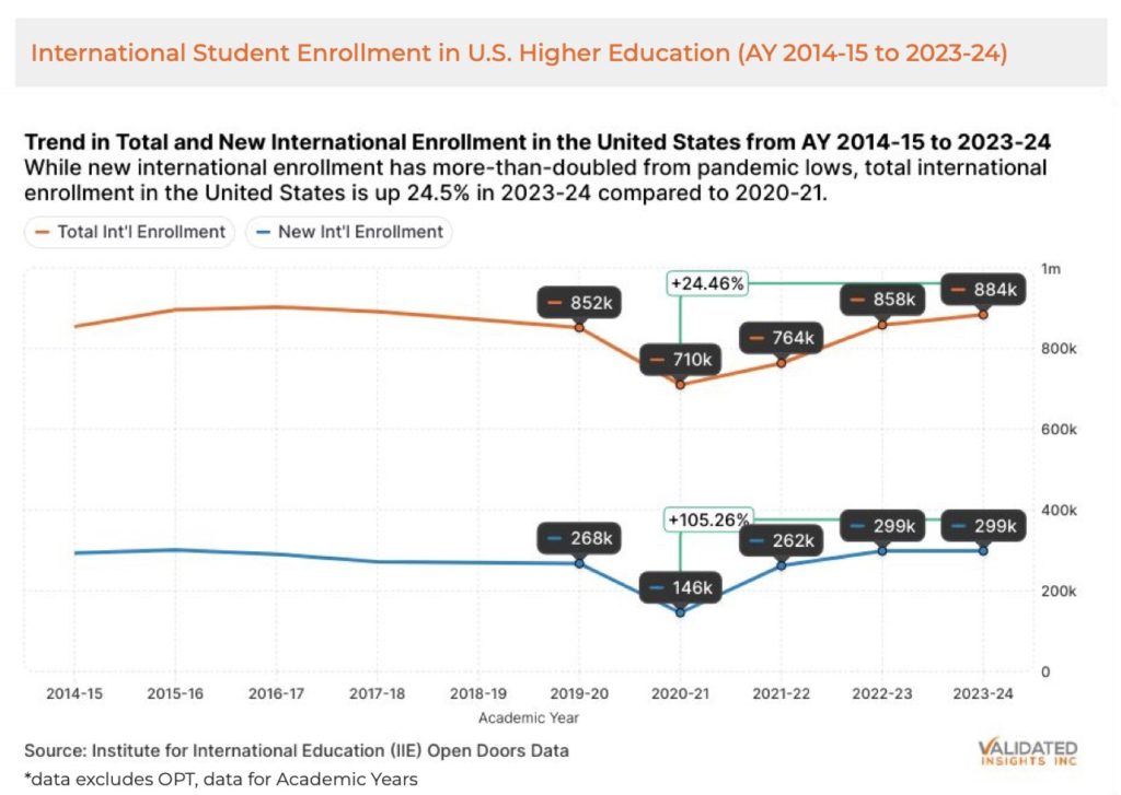 Validated Insights reports that U.S. colleges and universities are bracing for a sharp downturn: new international student enrollment is expected to fall by 30% to 40% in Fall 2025, which could translate to a 15% decline in total international enrollment. That equates to as many as 150,000 fewer international students this year.