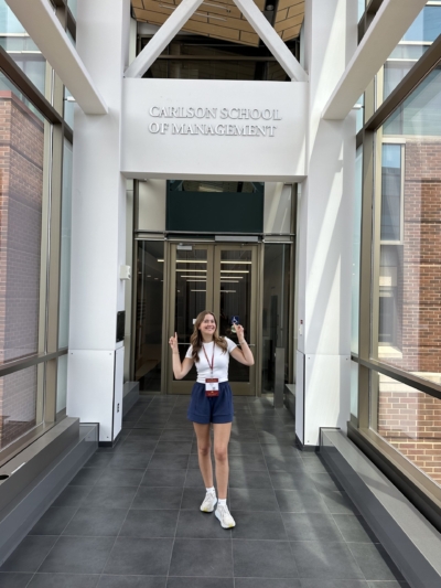 As I started thinking about my future, I realized I wanted to plant roots in Minneapolis. I hoped to be close to the Fortune 500 companies I’d grown up hearing about: 3M, Target, General Mills, Best Buy — and I knew the Carlson School had strong ties to those networks. I wanted a business school that could open doors, where I could gain real-world experience and connect with professionals who inspired me. The more I researched the University of Minnesota’s Carlson School, the more I could see myself there. I didn’t see my future in Nebraska anymore, but I could see it in Minnesota.