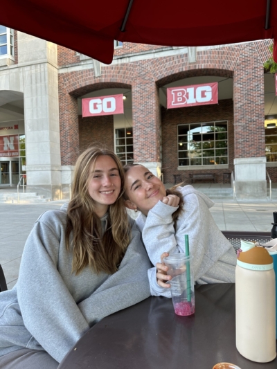 Emily and her friend Chloe outside the Nebraska Union spending time together.